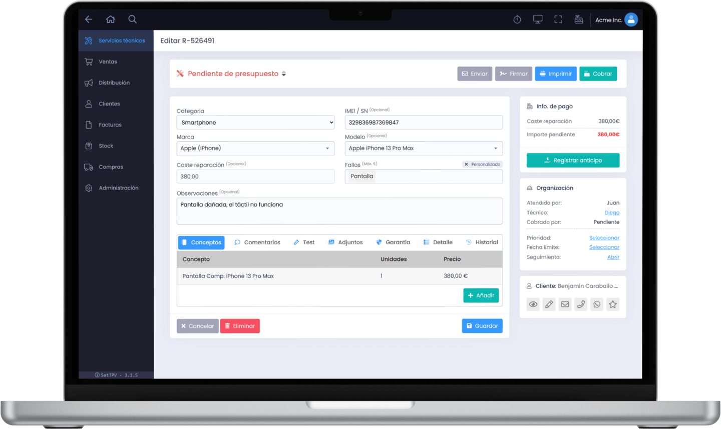 Excelente software de gestión del servicio técnico, minimalista pero muy completo. Y la atención al cliente es muy buena.
